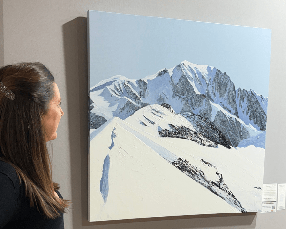 À cette occasion, j’y ai présenté une toile issue de ma série Altitude, un travail explorant le paysage de haute montagne entre composition et réalisme. Je le transcris comme un espace de perception et de contemplation. Loin de toute approche descriptive, chaque toile propose une lecture épurée du relief, où les lignes de crêtes, les masses rocheuses et les étendues de neige composent une architecture silencieuse.